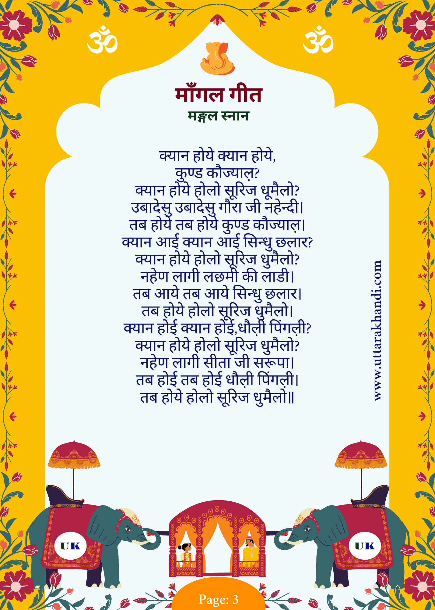 The recurring phrase “न्हाई ध्वेकी, लाडी मेरी, फुरपूर्या ह्वेगे” (“After bathing, my bride has become radiant and blossomed like a flower”) emphasizes the bride’s transformation and beauty after the traditional pre-wedding bath.