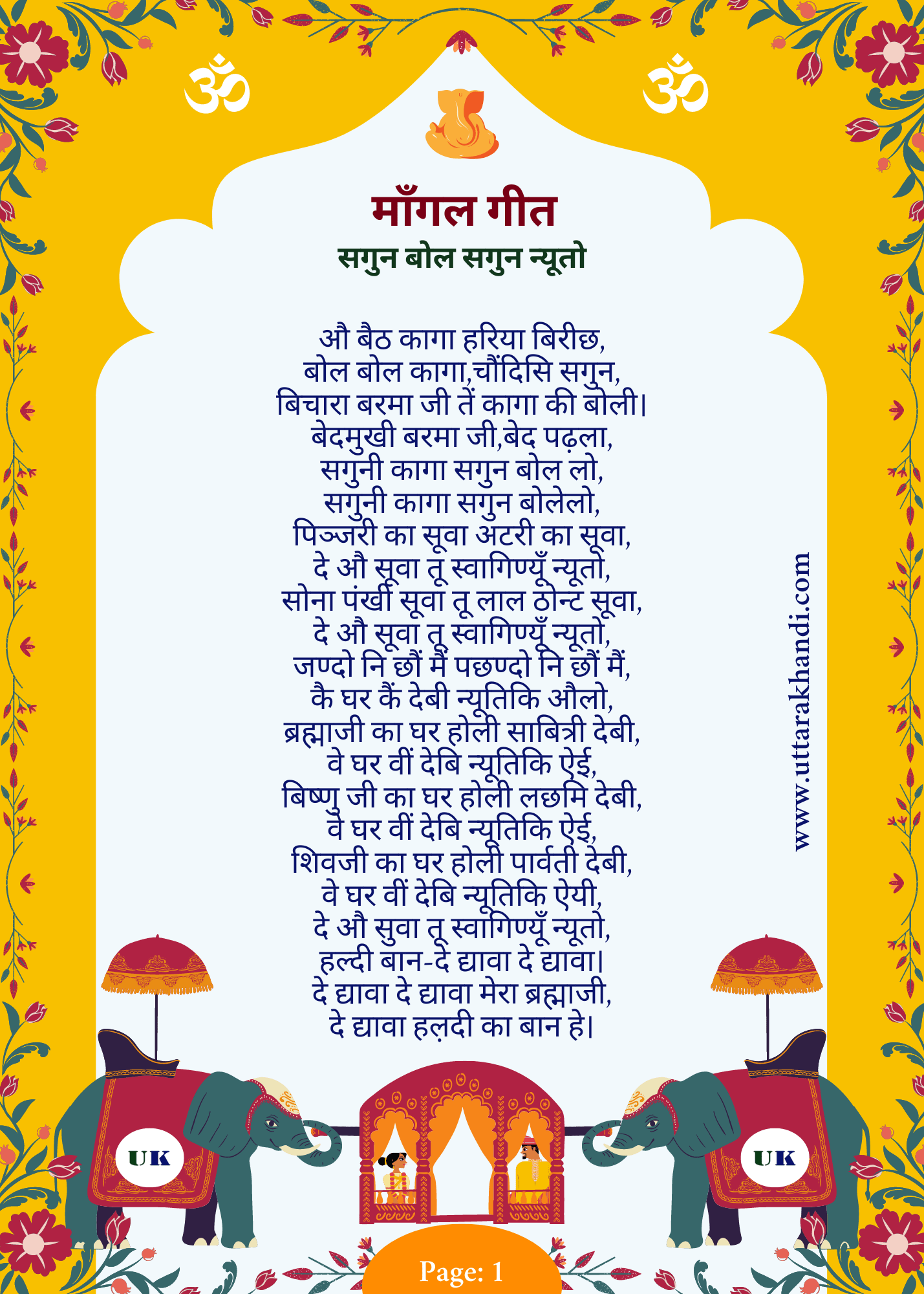 This Uttarakhand lokgeet (folk song) is a devotional and ceremonial song that emphasizes the importance of the “Kanya Daan” (the giving away of the bride) in a wedding ceremony. The song is a plea for divine blessings and is a reflection of the cultural and spiritual significance of the act of giving away the bride.