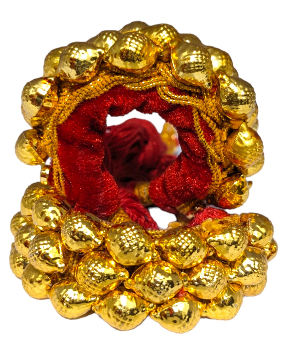 The Pauchi is a cherished bracelet in Uttarakhand, symbolizing marital status and cultural pride among Kumaoni, Garhwali, and Jaunsari women. Traditionally crafted in gold, it is designed with 20-50 small, gold shell-shaped beads on a red velvet (shaneel) base for comfort and longevity. The Pauchi, often worn with other traditional jewelry like the Nath, Guloband, and Pichora, beautifully represents Uttarakhand’s heritage, lending brides a regal, timeless charm.